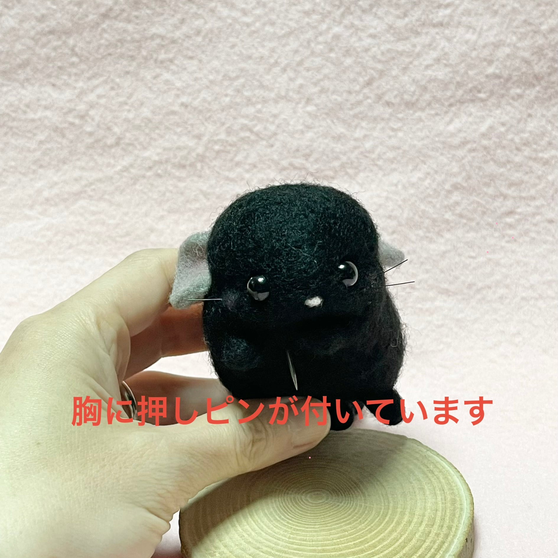 胸のところに押しピンを埋め込んで壁に刺せるようになっています!